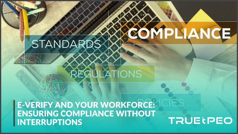Staying compliant with E-Verify doesn’t have to slow down your hiring process. As regulations evolve and more states enforce mandatory use, it’s critical for employers to integrate E-Verify into their workflows without causing disruption. That’s where True PEO comes in. Serving businesses across the United States, True PEO helps you manage E-Verify compliance, simplify onboarding, and reduce risks associated with employment laws. Whether you’re facing tight deadlines or staffing across multiple states, we offer the PEO services and HR support you need to keep things moving. Contact True PEO today to make E-Verify part of a smooth, compliant, and efficient hiring strategy that supports your workforce and protects your business.